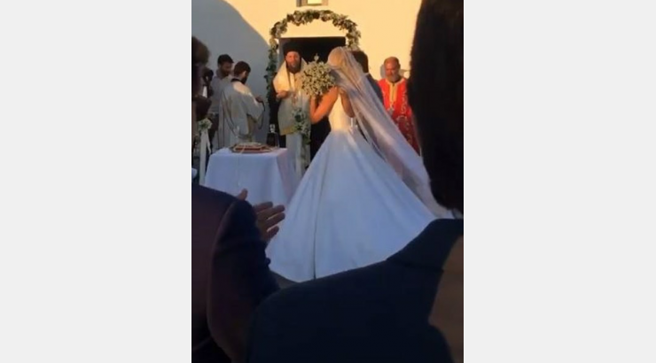 Η νύφη έλαμπε μέσα στο πριγκιπικό νυφικό της, δημιουργία της σήλιας κριθαριώτη ενώ δεν κατάφερε να κρατήσει τα δάκρυα της συγκίνησης όταν ξεκίνησε η τελετή του γάμου.το νυφικό της.